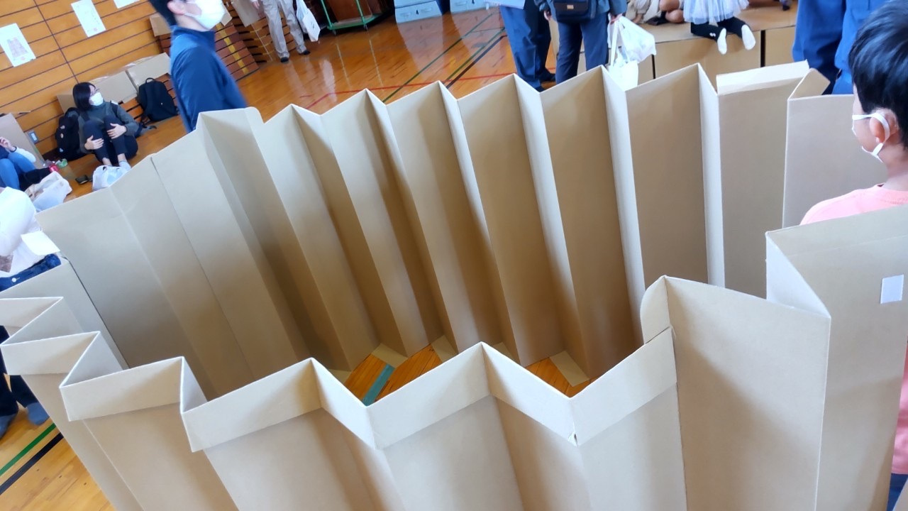 実際に避難した際の一人用のスペースの説明などを受けました!