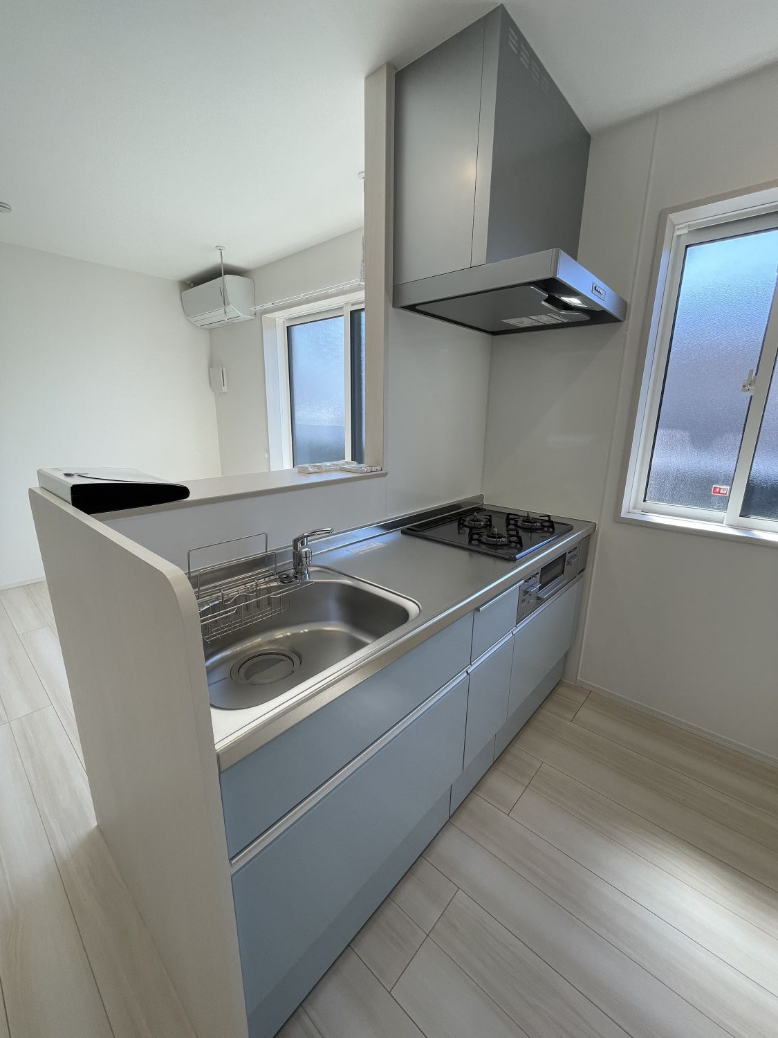 エアコン3基(リビング・洋室・ガレージ)、システムキッチン、浴室換気乾燥機、